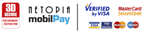 • Plata online cu cardul prin sistemul securizat de plati online de la MobilePay.